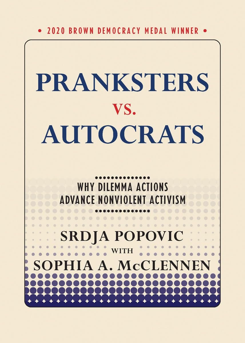 Srđa Popović was a leader of the Serbian student movement that helped oust Slobodan Milošević. He is now the director of CANVAS, the Centre for Applied Nonviolent Action and Strategy, which has worked with pro-democracy activists around the world. The focus of Pranksters vs. Autocrats is the “dilemma action,” where the opponent “must either (a) grant a nonviolent movement’s demand, or (b) act in a way that sacrifices some of its own support and damages its public image.”